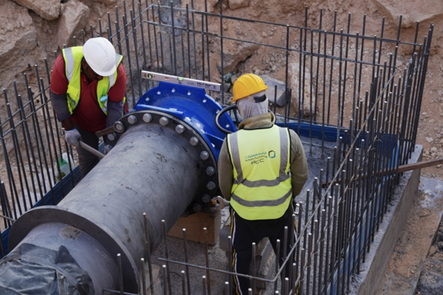 تنفيذ خطوط مياه جديدة وتحويل الخطوط الحالية لربط خزانات بريمان الفولاذية وخطي المياه الرئيسيين (2 و 1) (GRC)